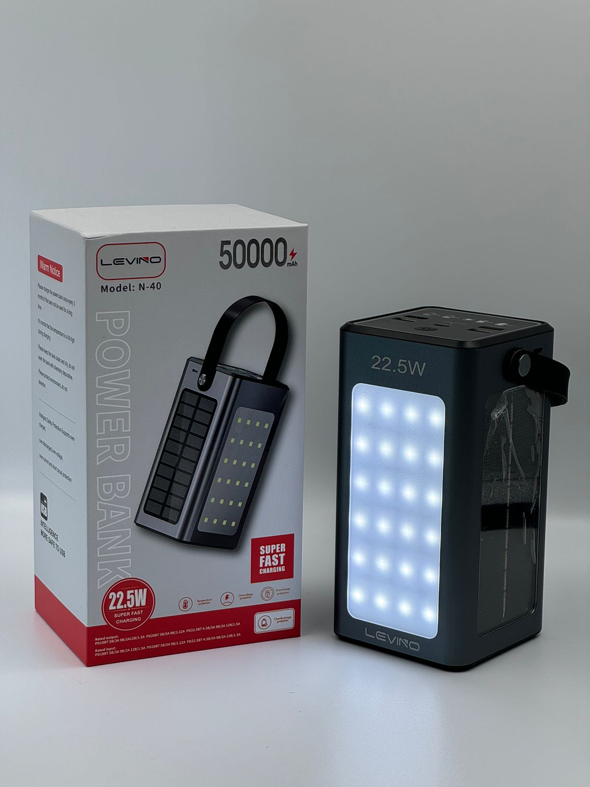 پاور بانک خورشیدی ۵۰۰۰۰ لوینو با کابل